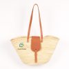 Natural Moroccan straw basket with short handle and leather trim; handmade, it can be used as a beach bag or market basket ,